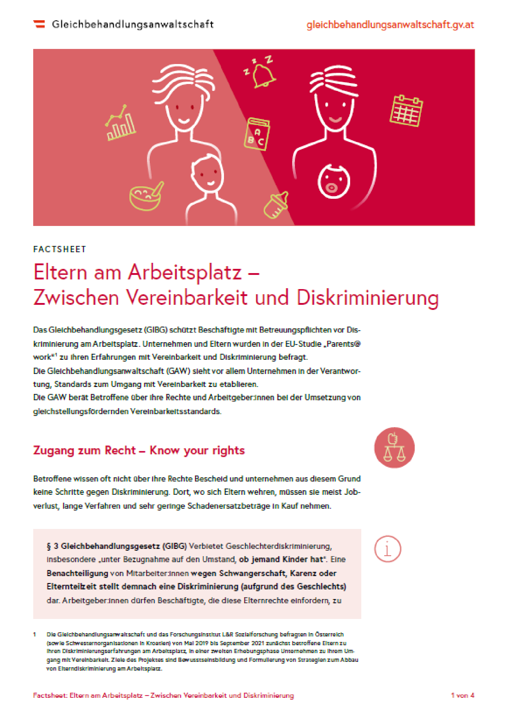 Zahlen & Fakten zu Vereinbarkeit von Beruf und Familie im Zusammenhang mit Diskriminierung in Österreich.