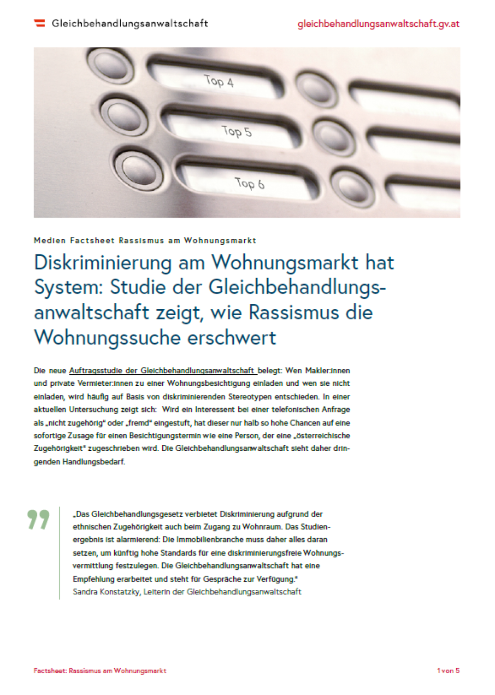 Medien-Factsheet: Rassismus am Wohnungsmarkt