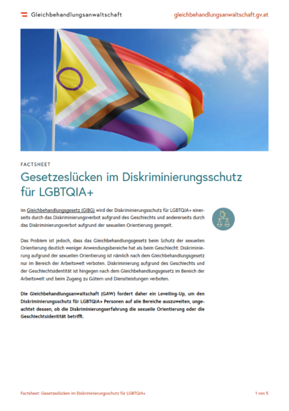 Medien-Factsheet: Gesetzeslücken im Diskriminierungsschutz für LGBTQIA+